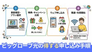 注意点はauひかりはマンションやエリアですでに他社の光回線(NTTのフレッツ光)などを導入している場合があるため、フレッツ光を用いたビッグローブ光がおすすめできます。