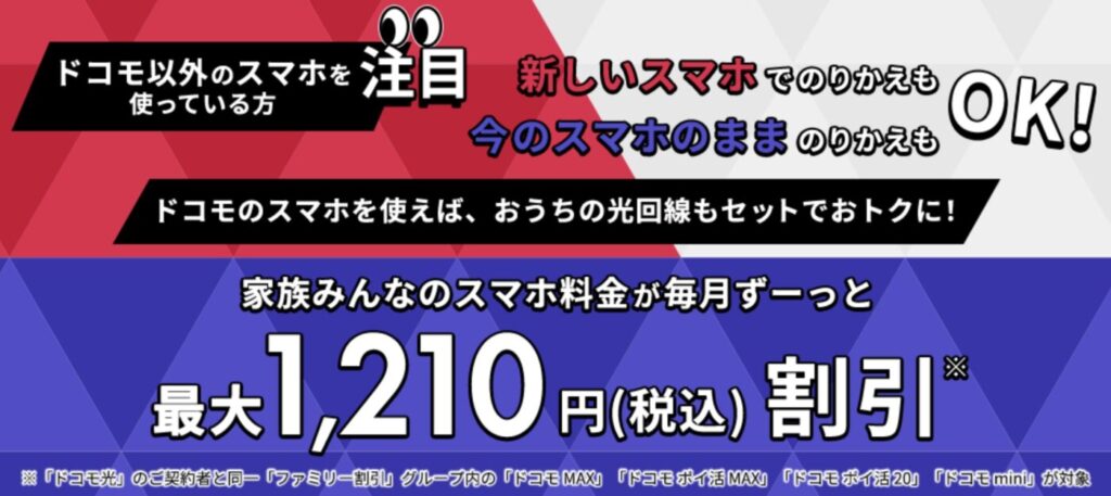 ドコモ光はドコモ回線とのセットで毎月1,210円割引
