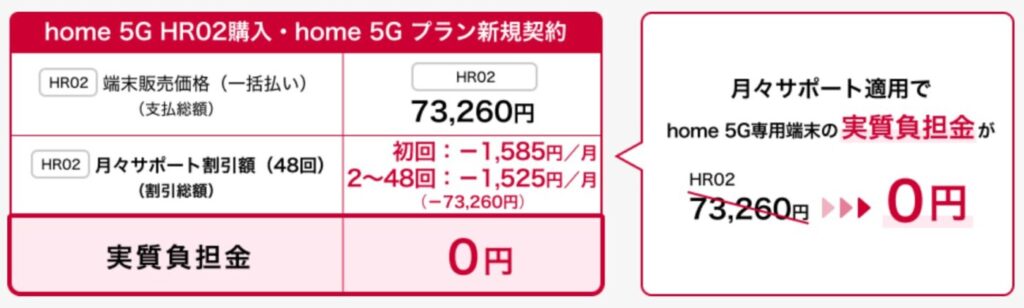 違約金はかかりませんが、home 5Gの端末代金(HR01・HR02)は別の話です。