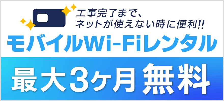 開通前にインターネットが使えない期間が不安な方も、GMOとくとくBB経由であればモバイルWi-Fiを最大3ヶ月無料でレンタルできるため、空白期間の心配なく乗り換えを進められます。