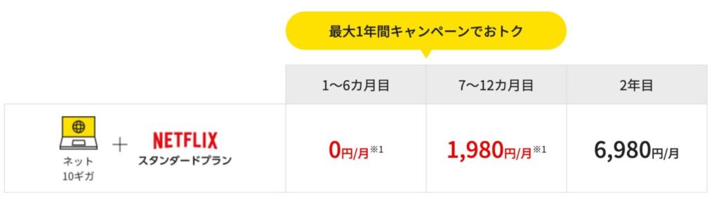 キャンペーン | ネットの月額料金が最大1年割引 Netflixパックで6ヶ月〜最大1年分プレゼント |