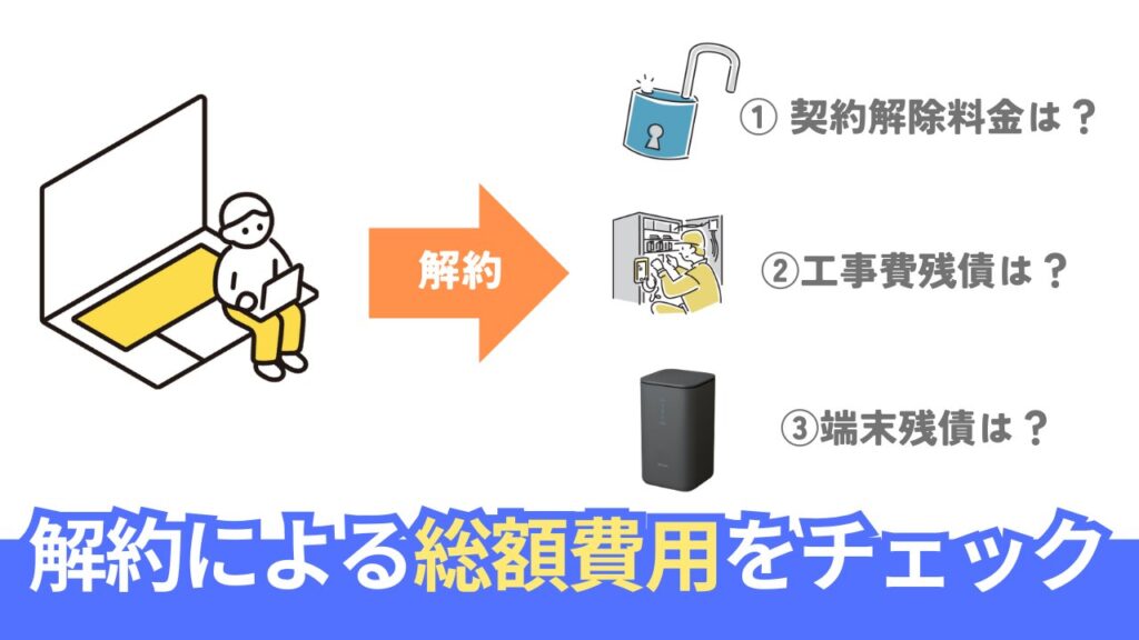 多くの人が「解約金=違約金(5,000円くらい?)」と思っていますが、一番の高額要因は「工事費の残債」やホームルーターなら「端末残債」です。
