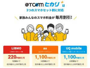 LIBMO、J:COMモバイル、リンクスメイト、Exciteモバイル、イオンモバイル、ripeaISM 、日本通信SIMなどは光回線とのセット割りによる割引は行われていません。