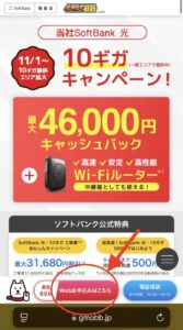ソフトバンク光へは前述のとおり、GMOとくとくBBが最も特典還元が高いです。申し込みの手順は以下で解説。