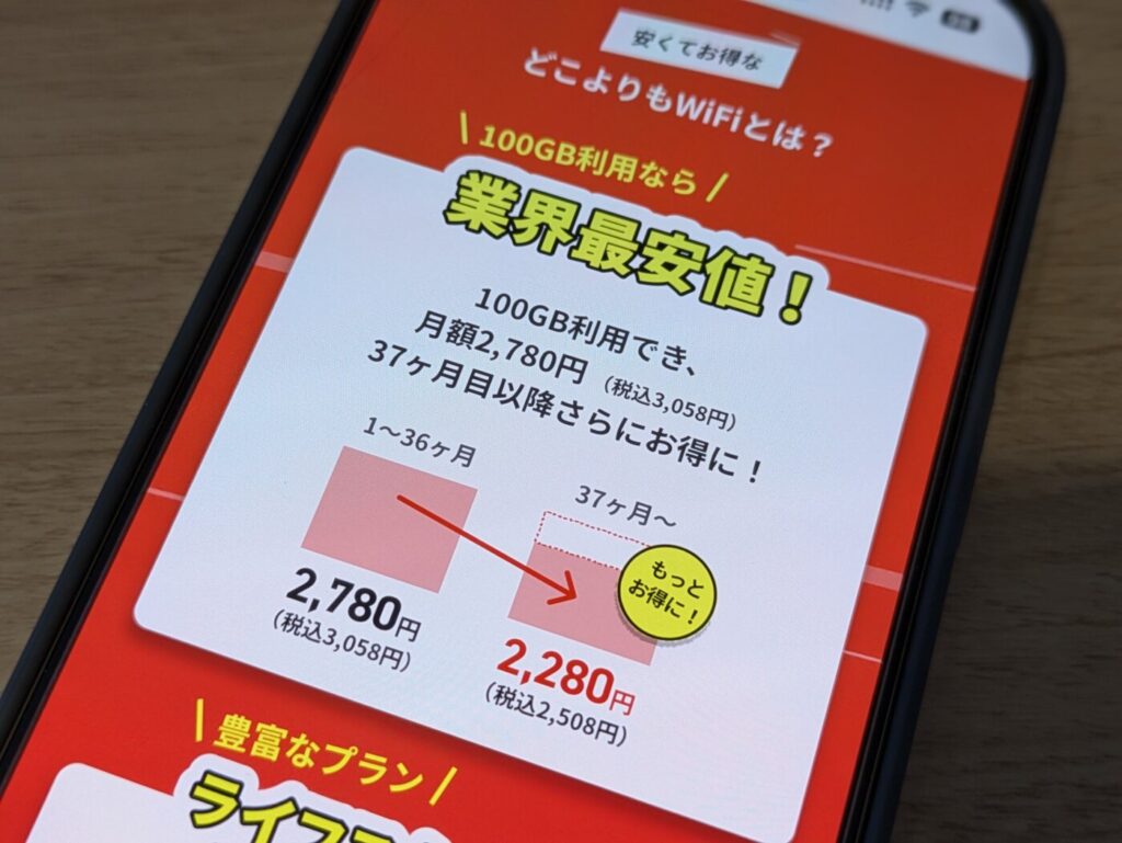 月間100ギガの大容量データを消費するとなるとスマホプランでは5,000円〜1万円近くの高額なコストがかかりますが、格安のポケットWi-Fiプランであればわずか半額以下の3,000円台で使えます。