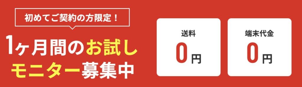 1ヶ月のお試しモニターは端末購入プランのみとなり、レンタルプランでは適用されないため注意。