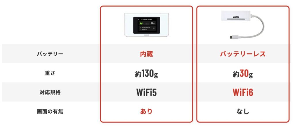 AiR-WiFiはおてがるプランを含め、端末を2種類から選べます。