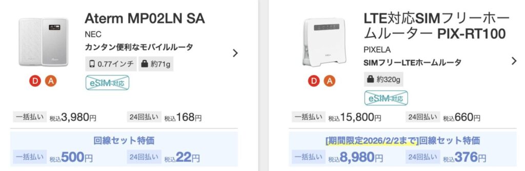 WiFiルーターは持ち運べるWiFiルーターが500円という特別価格で販売されています。
