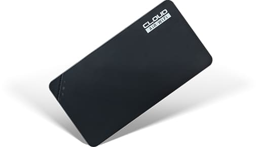 この手のひらサイズのWiFi端末がクラウドWiFiを申し込みすると即日発送され、届き次第スマホやパソコン、ゲーム機へ接続してインターネットがすぐに使えるようになります。