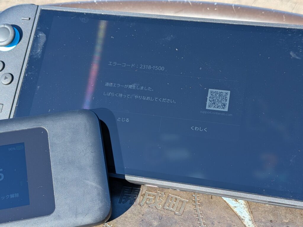 山岳部での接続テストではそこそこのパフォーマンスを見せていたWiMAXですが、実際にNintendo Switch 2へ接続を行いマリオカートワールドをプレイすると、接続が安定せずエラーコード:2318-1500で切断されてしまいました。