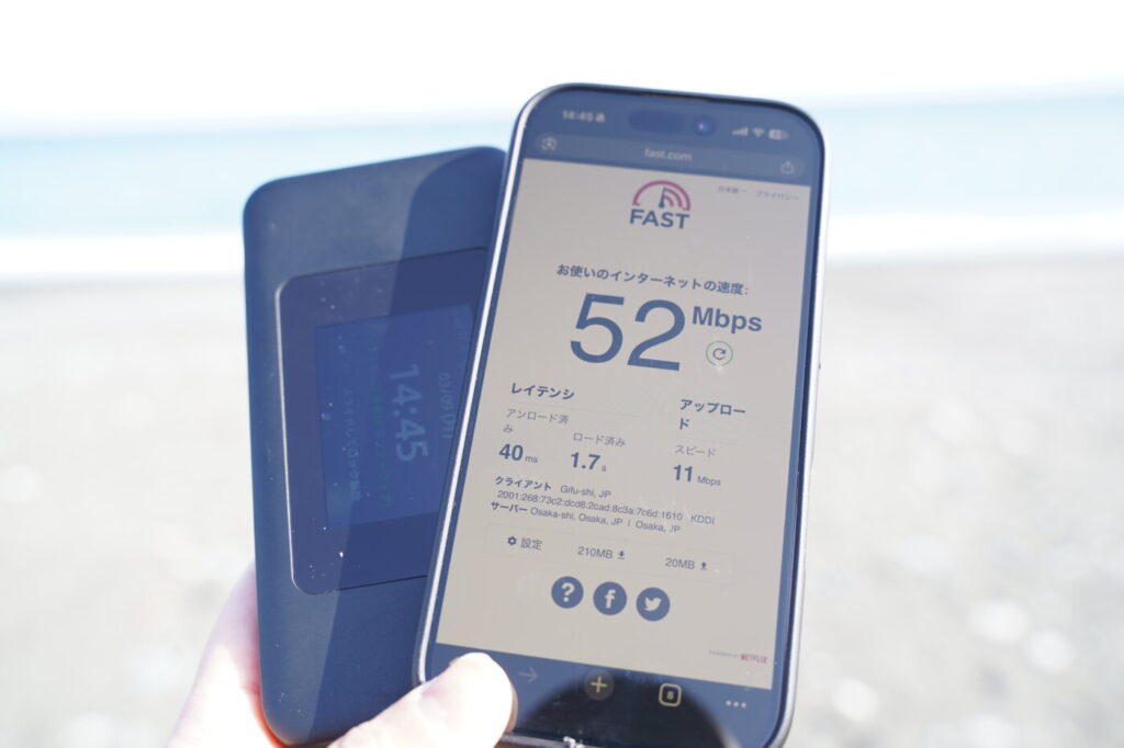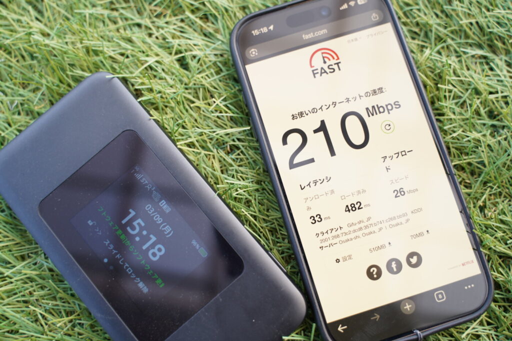 | 5GHz接続時 | XやInstagramなどのSNSアプリの起動が速く、YouTubeなどの動画もタップから再生まで即時。ストレスを感じる場面はほぼありませんでした。固定回線の代替として十分に使えるレベルです。 |