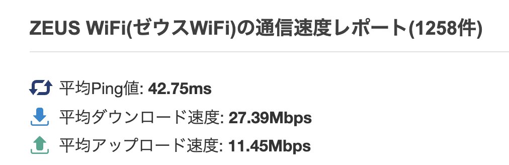 ちなみにZEUS WiFiの他の利用者による測定データをチェックすると下り速度は25Mbpsほどが平均であり、ポケットWi-Fiでこれだけの速度が出ていれば十分なレベルです。